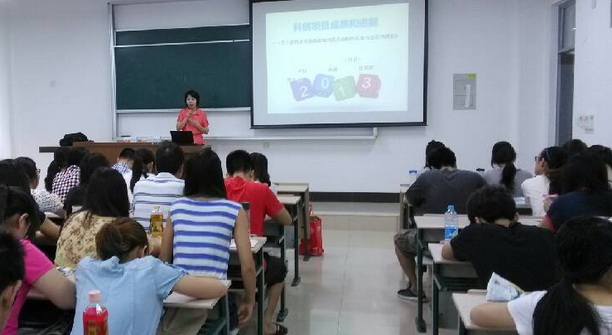 2013年7月2日上午,williamhill威廉希尔官网市场营销系“大学生创新课题中期汇报交流大会”在1105成功召开。系主任李怡芳老师、学院科创中心王方方老师以及营销系各位老师出席了本次报告会,11级,12级市场营销系的全体同学认真聆听了全场报告。