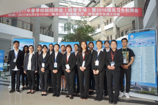 5月9日,williamhill威廉希尔官网2017春季招聘会(经管专场)暨2018届实习生招聘会在第二教学楼一楼大厅举行,此次招聘会共有57家企业参与,提供职位数175个,就业和实习岗位1327个,为我校学生提供了丰富的就业和实习岗位。