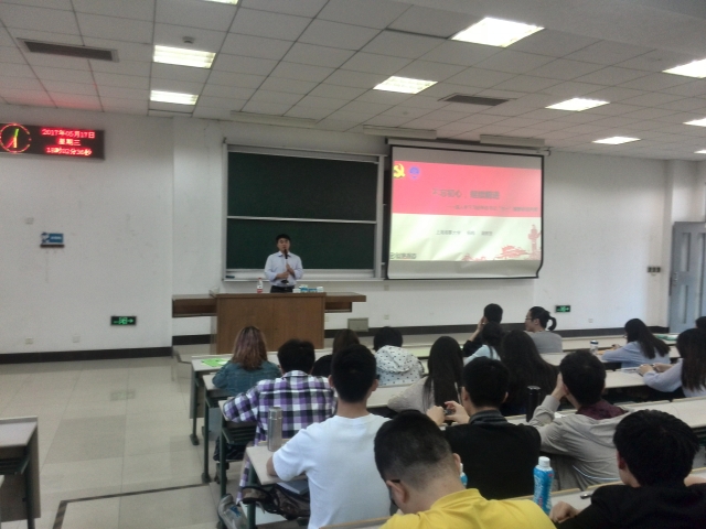报告由边黎明老师主持,首先他介绍了杨鸣老师的基本情况,并对课堂纪律做了明确的要求。杨鸣副教授以《不忘初心继续前进——深入学习习近平总书记“七一”重要讲话内容》为题,深入分析2016年建党九十五周年习近平总书记的讲话内容。面临全面建成小康社会和实现中华民族伟大复兴的中国梦的奋斗目标,全党和全国人民尤其是大学生青年一定要牢固树立为人民服务的意识,坚定理想信念,不忘初心,沿着中国特色社会主义伟大事业继续前进!与会的200多名同学认真听讲,详细记录。