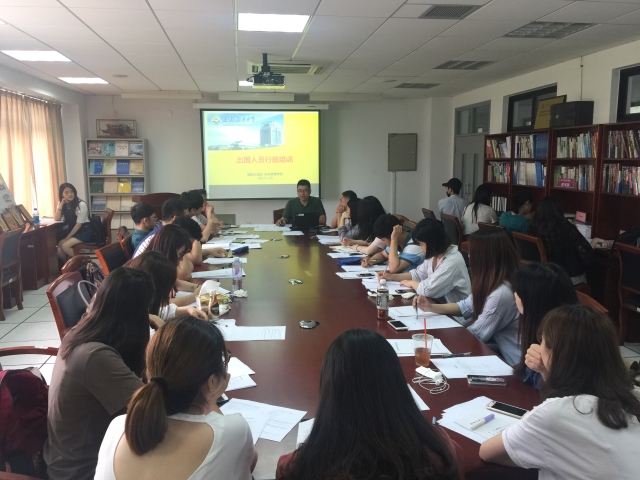 培训会上,刘老师向同学讲述了留学期间应注意的政策法规、外事纪律、突发事件等事项,并根据以往学长学姐的入学生活和留学经验,向大家详细介绍了出国前应做好的准备工作,告诉同学如何尽快适应国外的生活,以及如何在国外规范自己一言一行。同时,刘老师也表达了对各位入学同学的期望,要求同学将重点放在学习上,希望每位同学不仅代表中国公民,更是代表海大学子,谨言慎行,自我要求,顺利完成任务,完满地结束自己的大学生涯。