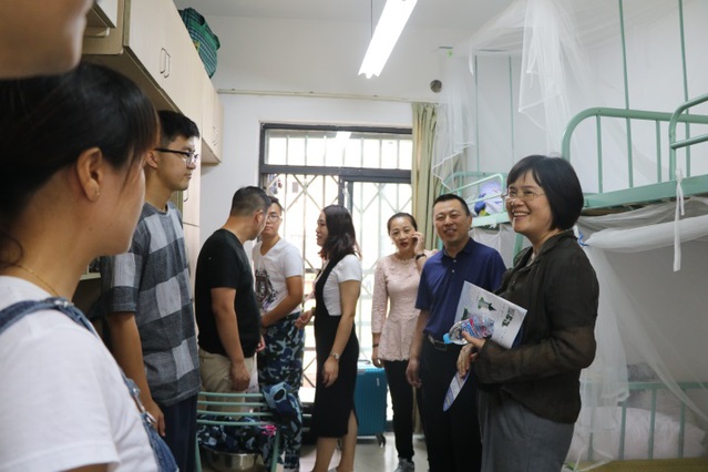 在走访新生宿舍时,校领导徐总会计师同已经入住宿舍的学生及学生家长进行了亲切交流,对到校新生表示欢迎,叮嘱新生:在以后的生活和学习上遇到任何问题,都要及时向学校和学院反映,学院和学院会竭尽所能地满足各位新生的要求。在场各位家长和同学对学校的住宿条件以及学院的迎新安排都高度满意,新生同学们也对未来四年的大学生活充满期待。