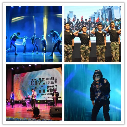 本次晚会共有来自学院本科生、教职工及学校各社团联精心准备的11个节目参演,形式多样,内容丰富。晚会以蔚蓝录音带作为线索,节目作为录音带的内容一个个被串联起来,堂堂乐队活力四射的演唱点燃了整个报告厅的气氛,完美地拉开了晚会的序幕。八一社的“渴望光荣”节目紧随其后,对于大一新生们来说,军训才刚刚过去,八一社震撼有力的表演仿佛又将我们带入了那段有苦有乐的军训时光。武樱界隈社成员们用手中梦幻绚丽的荧光棒向大家描绘出了一个神秘美丽的桃源乡,台下掌声连连,在感叹荧光之舞的魅力之余,岳渲表演社的小品表演——《皇家赌场》更是给大家带来了许多欢声笑语,另有青春洋溢的健美操社呈现的健美操,自信与神采感染了在场所有的观众,轻松愉快的游戏环节增添了与大家的互动。
