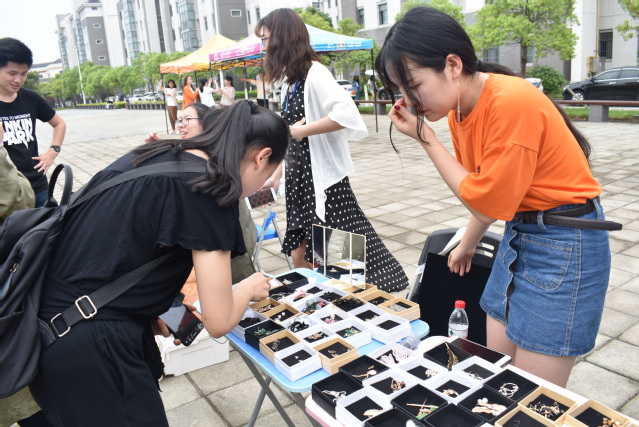 活动过程中,每一位摊主巧妙地勾勒自己的宣传,灵巧地布局陈列的物品,坦然地跟买家推销自己的“珍藏”。不仅丰富了同学们的课余生活,体验了独具一格的贸易乐趣,同时锻炼了同学们的自我表达能力。由我院学生会设置的公益摊位,所有收益将通过公益平台捐献给山区,主要包含笔、本子和一些二手的活动用品等,采用游戏的方式,吸引了过往同学热情参与。
