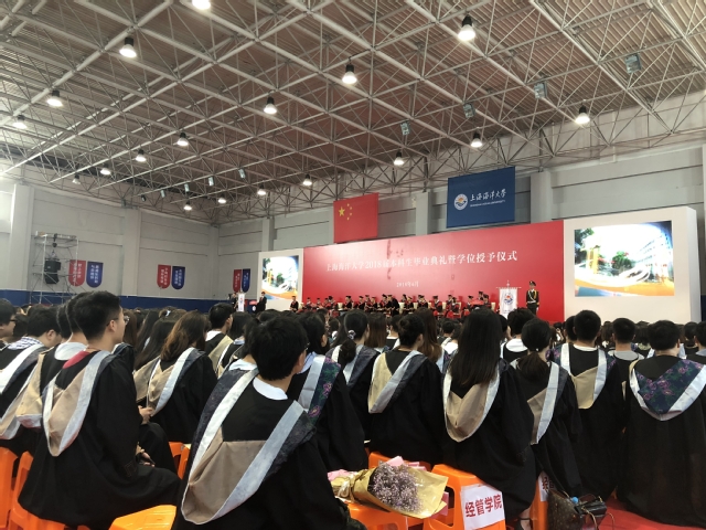 学位授予仪式上,毕业生以学院为单位依次起立,williamhill威廉希尔官网全体毕业生在平瑛院长的引领下,通过校学位评定委员会主席程裕东校长的批准,获准毕业,获授学士学位。同学们起立齐声高呼“经世济民,自强不息”的院训口号,并将学位帽流苏从右侧拨到左侧,掌声与欢呼声在会场久久回荡。程裕东校长向圆满完成学业的同学们表示衷心祝贺,并为即将奔赴新征程的2018届毕业生们送上美好的祝愿。