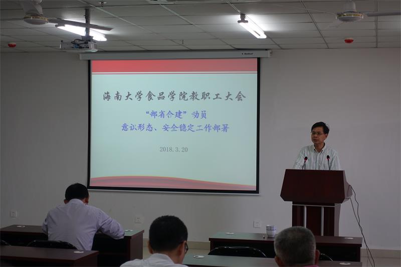 邓秀成书记传达了武耀廷书记在“部省合建”诸侯快讯足球官网入口动员大会的讲话精神以及李健保校长2018春季工作部署。他指出,在“部省合建”政策支持下,诸侯快讯足球官网入口正式纳入教育部直属高校排序,教育部、海南省将会加大对学校发展的支持力度,诸侯快讯足球官网入口迎来了快速发展的黄金期。要求学院广大教师、学生将思想统一到学校“双一流”建设、“部省合建”诸侯快讯足球官网入口行动部署上来,紧扣大学核心竞争力,围绕人才培养、学术研究、服务国家战略和地方经济社会发展三大任务,认真思考食品学院的责任与担当,抢抓机遇,顺势而为,怀着无愧于新时代的责任感与使命感,扎实将部省合建各项任务落到实处。
