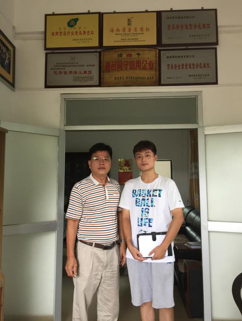 次日中午,团队在宾馆大厅集合,一同前往海南黎轩酿酒有限公司,在经过公交换乘及步行后,我们在下午2点左右到达位于七仙岭国家原始森林公园脚下的黎轩酿酒有限公司。在向公司工作人员说明来意后,厂长韩尉定先生热情接待了我们,向我们介绍了目前该厂及当地山兰酒产业发展情况并邀请我们品尝黎轩酿酒公司自主研发的山兰酒。在向我们简述山兰酒的生产理念时,韩尉定先生提到,用科学的方法重现古法山兰酒的酿造条件。这也应当是其他黎族产业要想在现代工业化的大背景下重新焕发生命力的关键所在,将现代工艺与黎族古法有机结合,使传统黎族产业适应时代潮流。