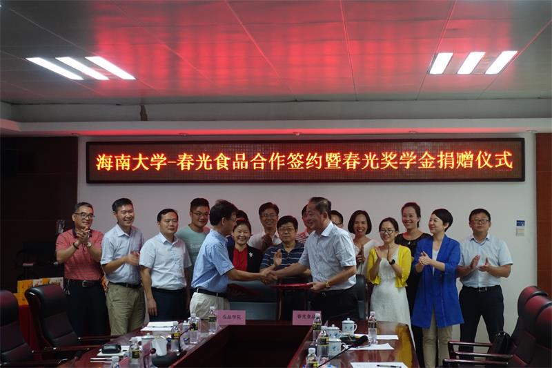 11月1日,诸侯快讯足球官网入口与海南春光食品集团合作签约暨春光奖学金捐赠仪式在诸侯快讯足球官网入口举行。海南春光食品集团董事长、总经理黄春光先生及部分企业高管,诸侯快讯足球官网入口校长办公室、研究生处、教务处、发展规划处、科研处、学生工作处、计划财务处及食品学院领导,科研团队代表等参加合作签约仪式。