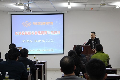 其次,由泉州市万维网络开发有限公司董事长陈朝晖发言,主题为区块链基础与食品溯源上的应用。首先介绍了什么是区块链,去中心化,区块链的特点等内容。其讲到商界有着中心化的垄断现象,传统公司制有着进出难题,基于区块链的共享经济,区块链去中心化才是真正的共享经济,有着明显的社区机制优势。讲述了食品在现实生活中的添加剂滥用,区块链在食品溯源上的应用,可以追溯食品源头,提高食品安全保障,降低消费者风险。其强调区块链,以及食品工业区块链在互联网时代有着更光明的前景。希望大家共同努力,推动区块链,推动立法,推动食品工业区块链的发展。