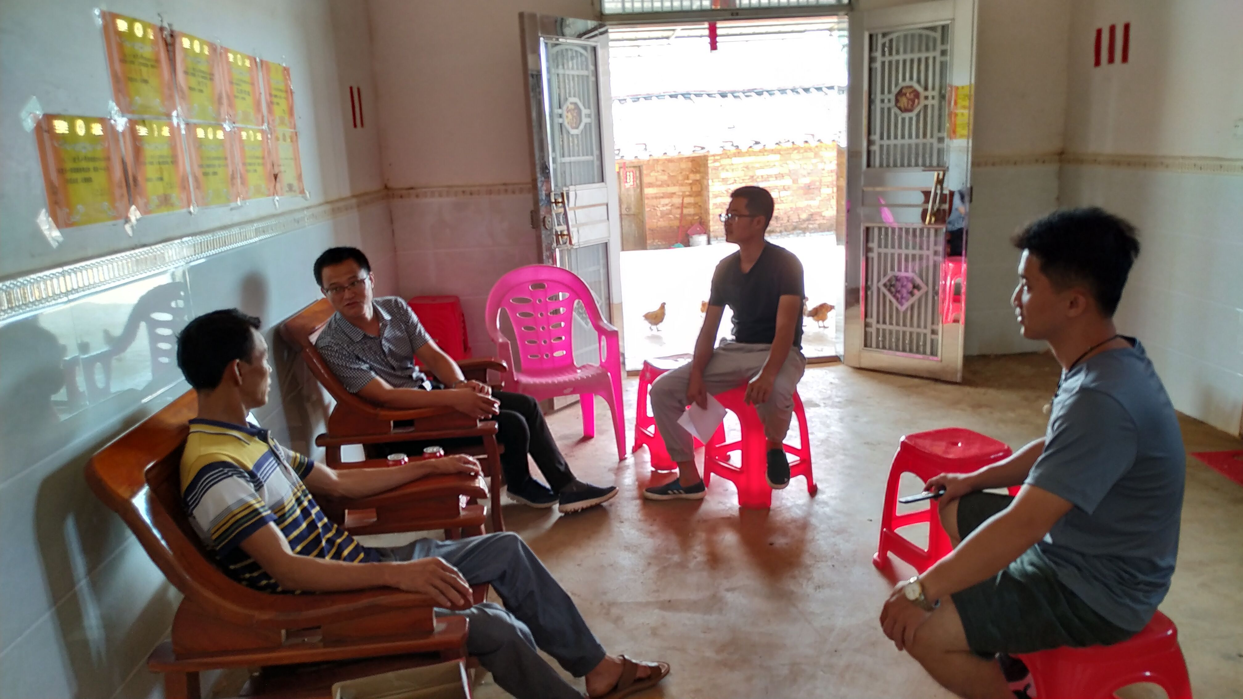 三位老师与贫困生家长亲切交谈