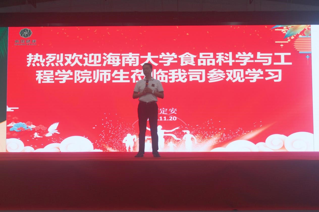 首先南国健康产业园副总经理陈伟斌及南国健康产业公司工作人员对诸侯快讯ok1122官网全体师生的到访表示热烈欢迎。陈伟斌副总经理向同学们介绍了南国企业的文化、品牌发展和产品种类,让同学们对南国食品有了初步的认识。