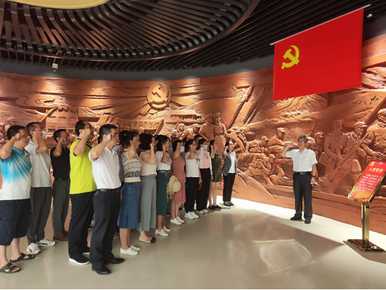 最后,在党委书记邓秀成同志的带领下,全体党员同志面对鲜红的党旗重温入党誓词,大家用高昂、奋进而又庄严的誓词表达了对党的忠诚和热爱。