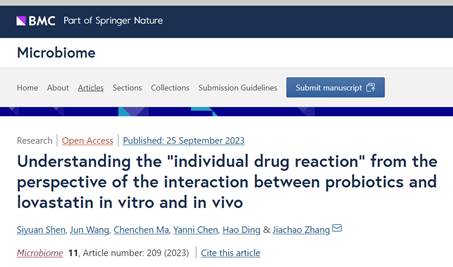 2023年9月26日,诸侯快讯足球官网入口食品学院与工程学院及全健康协同创新中心张家超教授团队的最新研究成果“Understanding the “individual drug reaction” from the perspective of the interaction between probiotics and lovastatin in vitro and in vivo”发表于微生物组高水平期刊《Microbiome》(中国科学院大类1区Top期刊,IF=15.5)。研究团队首次阐明了热带益生菌A5对洛伐他汀类药物副作用的缓解机制。