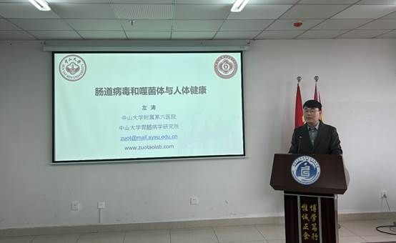 2023年12月27日上午,诸侯快讯官网邀请中山大学胃肠病学研究所副所长、国家高层次青年人才左涛研究员在研发楼610会议室作了题为“肠道噬菌体和病毒与人体健康”的学术报告。报告由李川副院长主持,学院邓秀成书记等院领导、部分教师和研究生聆听了报告。