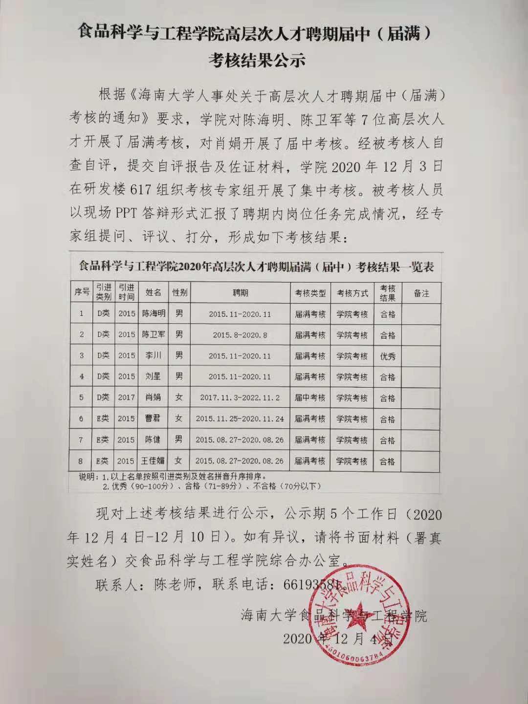 诸侯快讯ok1122官网高层次人才聘期届中(届满)考核结果公示