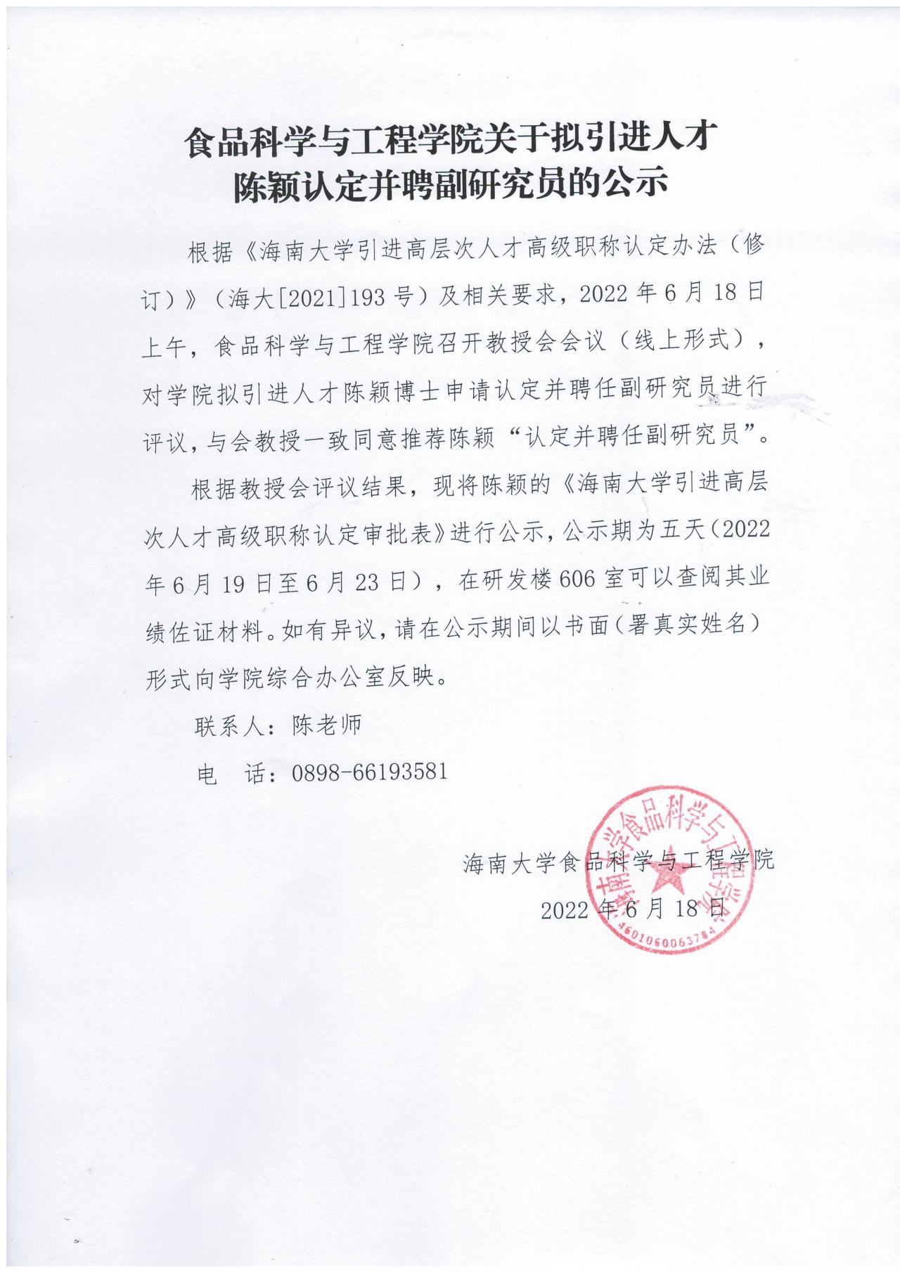 诸侯快讯ok1122官网关于拟引进人才陈颖认定并聘副研究员的公示