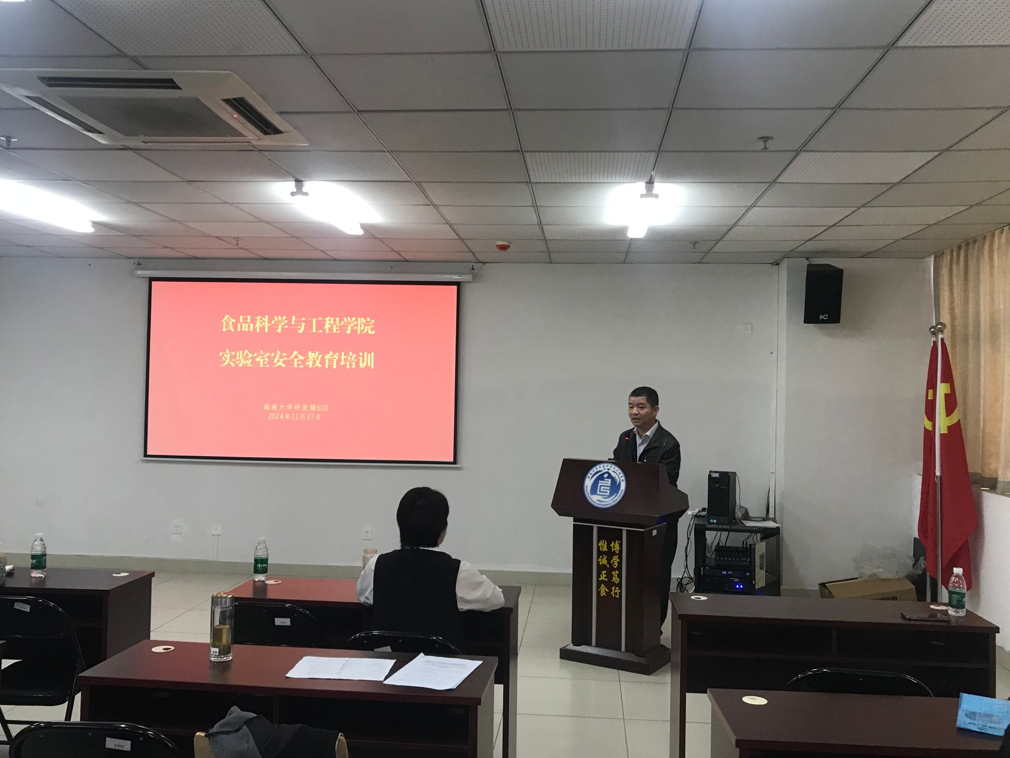 为了落实海大办《诸侯快讯足球官网入口实验室安全管理工作规程》以及海大党政办〔2024〕17号文件的相关规定和检查要求,食品科学与工程学院根据校实设处“关于组织开展实验室安全教育培训活动的通知”(海大实〔2024)50号)要求,11月27日上午举办了实验室安全教育培训活动,邢红斌书记和于志鹏副院长组织全院教职工观看警示教育片,校实设处杨海峰副处长和陈秀莲科长亲临现场指导,学院实验中心向东主任对存在的实验室风险和问题进行了汇报。本次培训活动进一步厘清了学院实验室安全管理存在的短板,要求各实验室加强和落实实验室安全管理责任,增强了全院教职工师生安全意识。
